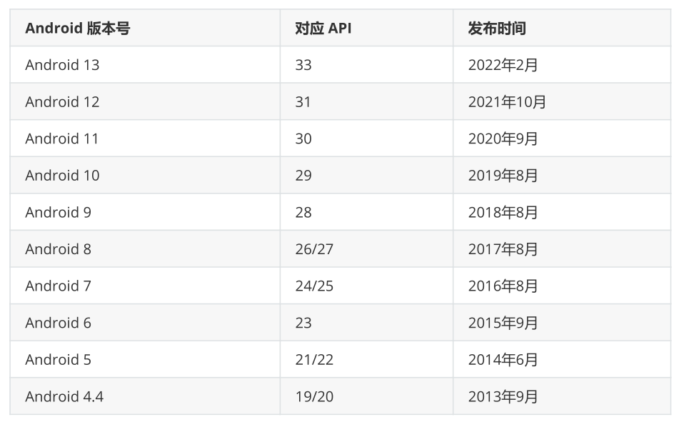 Android几乎每年都要发布一个大版本,技术的更新迭代非常之快,Android几个主要版本的发布时间