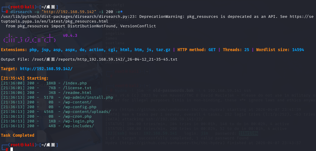 dirsearch -u "http://192.168.59.142" -i 200 -e*