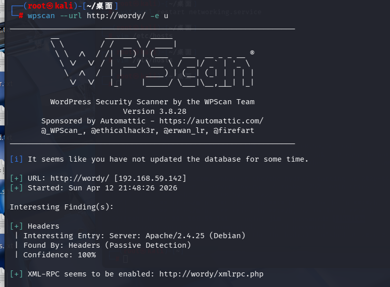 wpscan --url http://wordy/ -e u