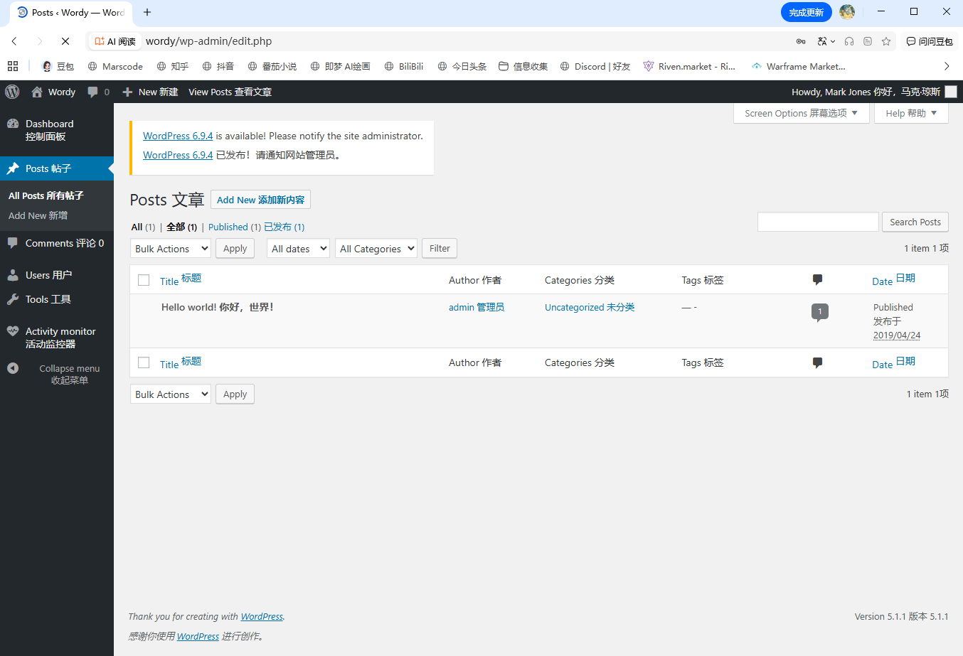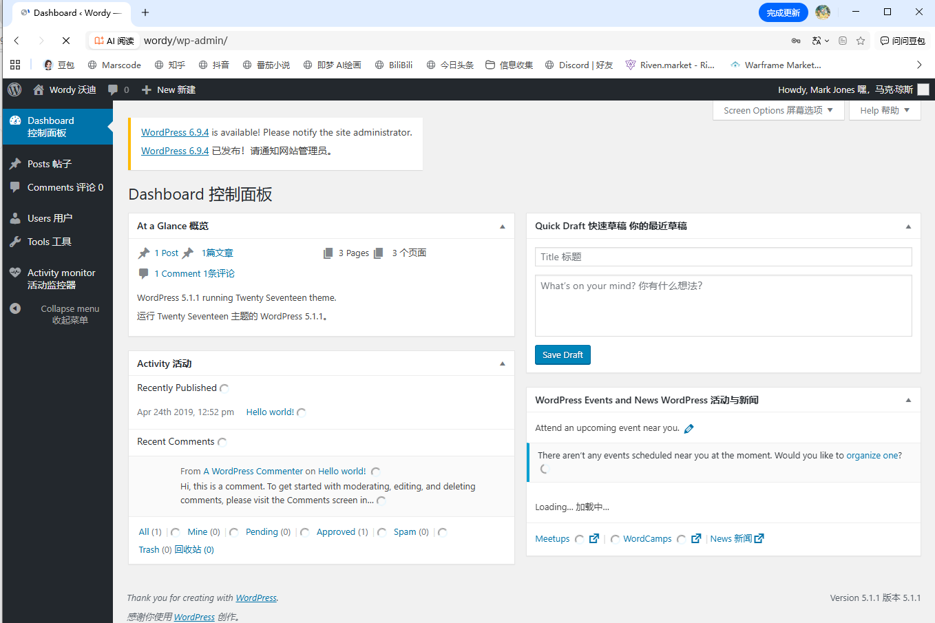 可以发现是一个wordpress