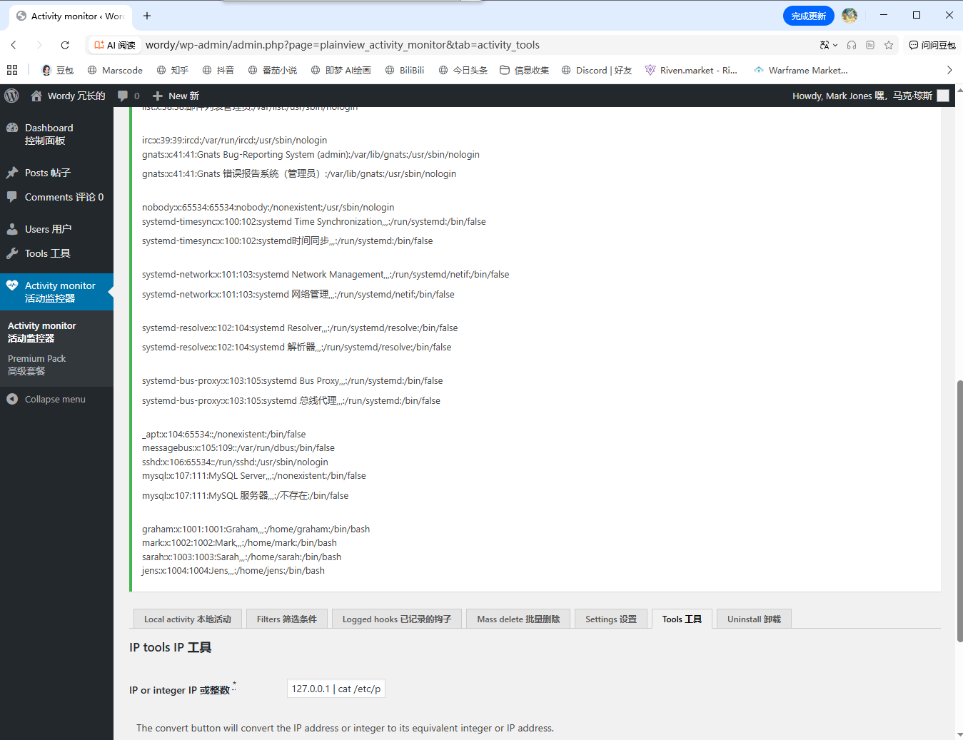 尝试加管道符查看passwd