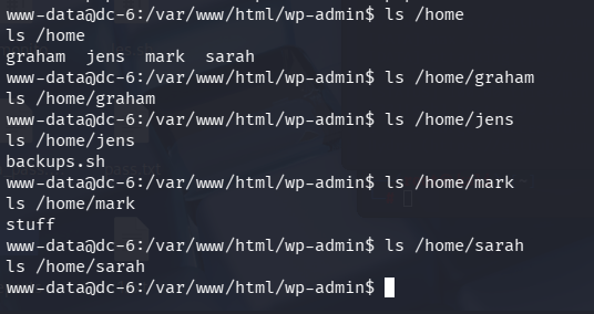 可以发现jens家目录有一个脚本mark家目录好像有一个文件
