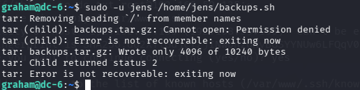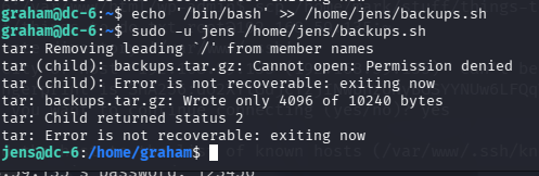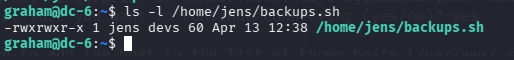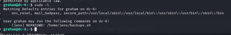 用户 graham可以无需输入密码,以 jens 用户的身份 执行脚本:/home/jens/backups.sh