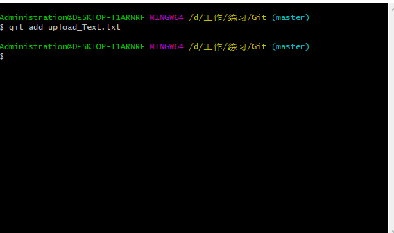 1. 将"upload_Text.txt"文件上传至暂存区.