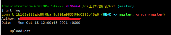 命令: "git log" 查看提交记录: