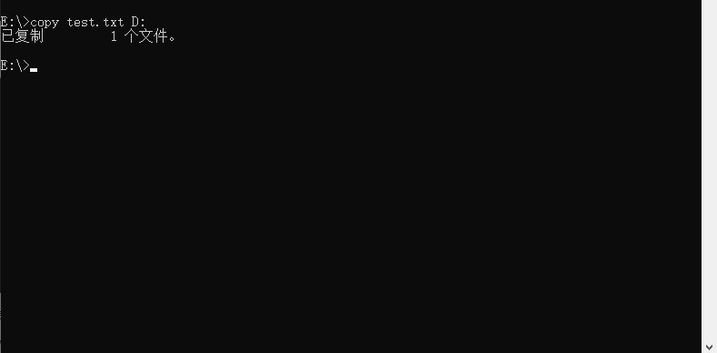 11.拷贝文件 "copy 源文件或目录 目标目录" 将test.txt文件拷贝到D:盘根目录下。