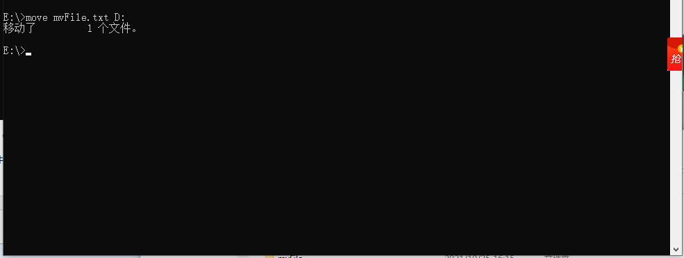 13:移动文件 "move 源文件或目录 目标目录" 将mvFile.txt文件移动到D盘根目录下