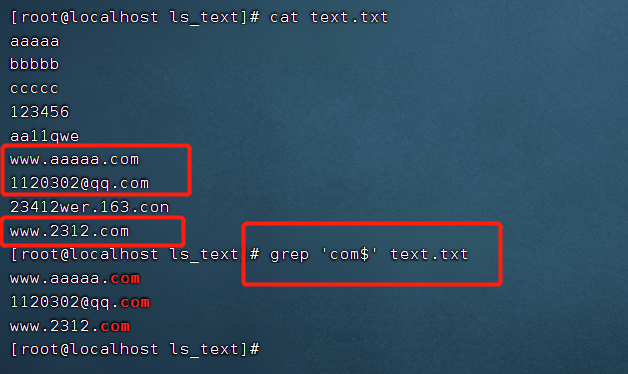 $ 查找以某字段结尾的行,例如:grep 'com' 查找已com为结尾的行,所有文件行结尾都有一个$符,所有$要放在最后