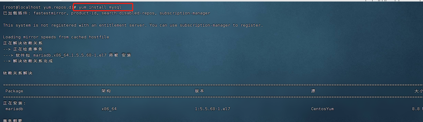 当我们使用Yum进行安装时它就会通过仓库数据文件找到对应的依赖包进行安装。