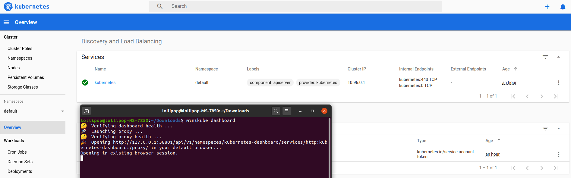 也可以打开dashboard查看,开启dashboard会打开浏览器页面,执行命令: