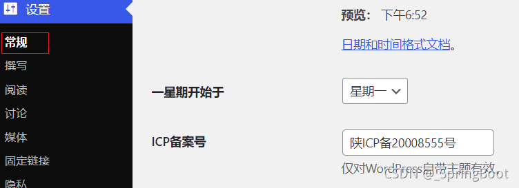 在wordpress的设置->常规中就会出现下面这个功能,刷新页面会出来: