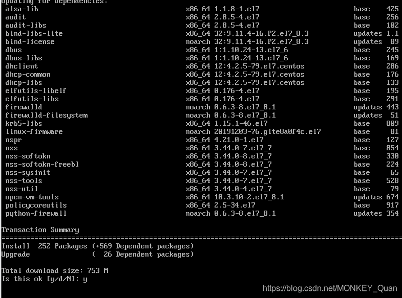 回车后,执行过程有下图,输入y然后等待下载安装结束。