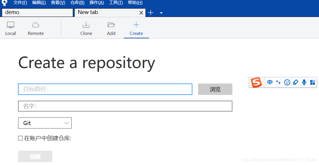 目标路径选择电脑中的一个空的目录就可以,当你创建好本地仓库后,本地的仓库会自动有一个.git文件