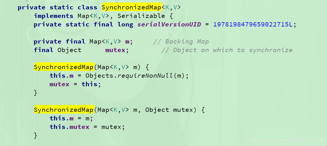 原来synchronizedMap是Collections这个集合工具类的一个静态内部类
