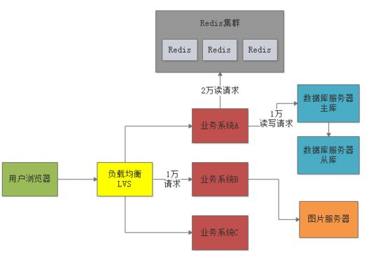 大概知道了高峰期每秒钟可能会有1万左右的请求量之后,来看一下系统中各个服务器的压力预估。