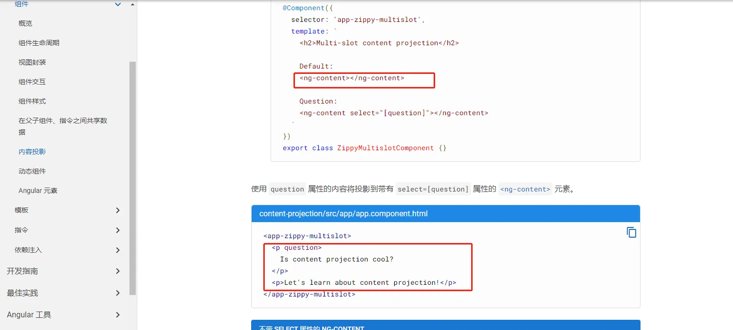 对于第一种情况,我们先引入angular里的内容投影的概念