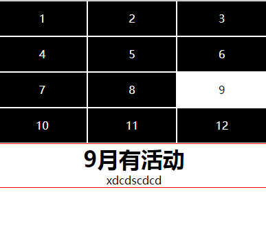 div2.innerHTML="<h1>"+ (index+1) + "月有活动</h1><P>"+ arr[index]+"</P>";