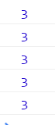 1 console.log(1 + 2); 2 console.log(8 - 5); 3 console.log(1.5 * 2); 4 console.log(12 / 4); 5 console.log(13 % 5); //得几不重要,要的是余数 |