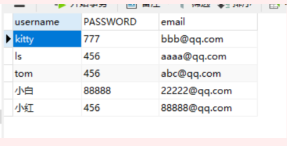 insert into users values('小白','88888','22222@qq.com');