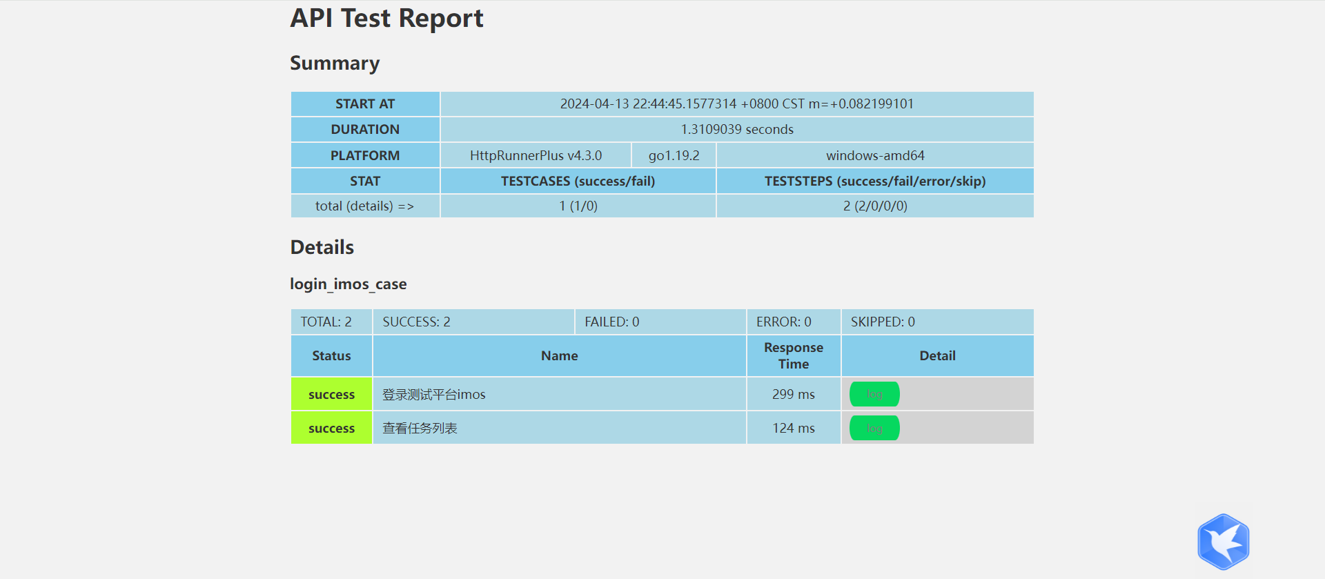 执行:hrp run testcases\get_imos_task_list.yml --gen-html-report 查看报告,成功: