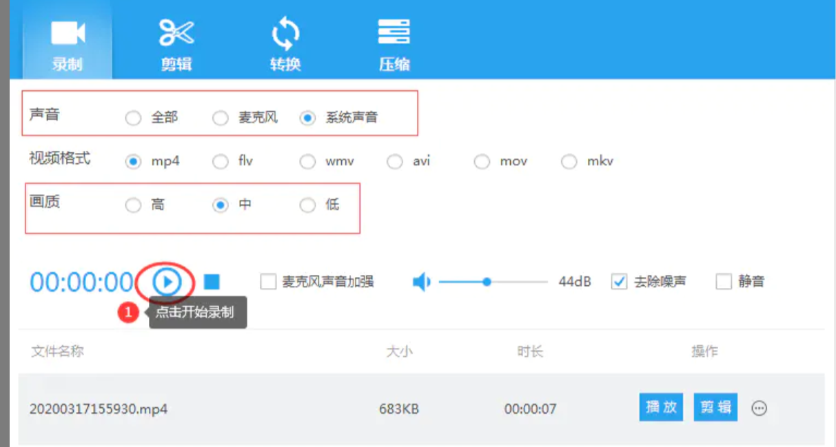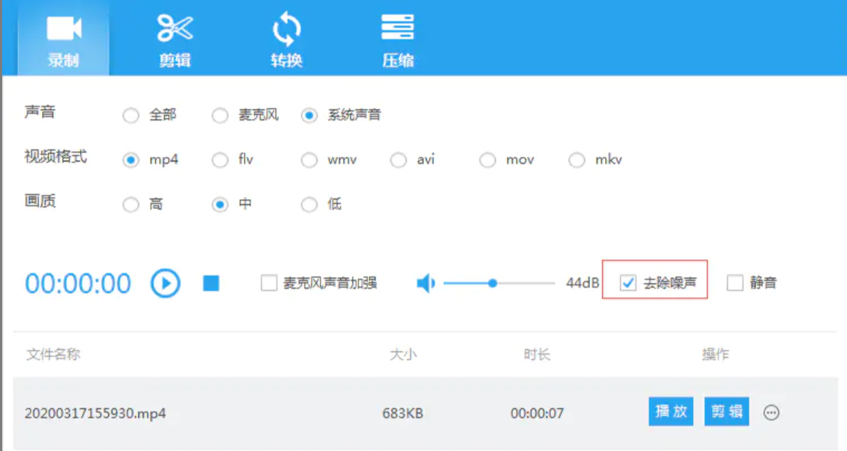 2,第二步,在录制前,用户可勾选去燥选项,这样可以保证录制出来后的视频没有其他声音干扰.