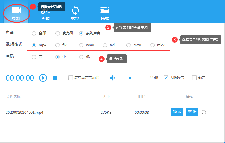 QVE屏幕录制提供了视频剪辑,视频转换,压缩等功能 ,更多使用技巧和问题,点击软件右上角的帮助,里面有详细的指导和问题解决方案.