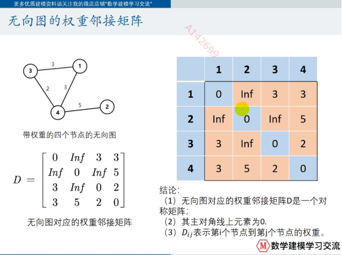 比如D31元素表示第三个元素到第一个元素的权重是3(对称)