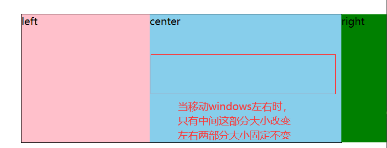 3. center盒子width设置100%,left和right盒子设置为固定的px值;