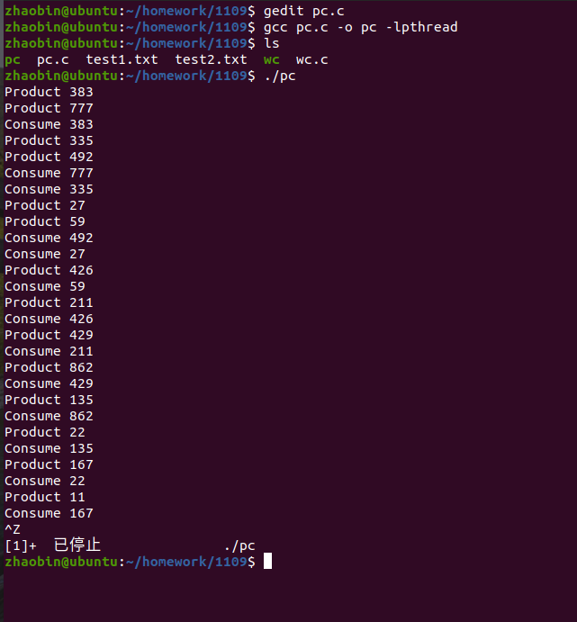 pthread_create( &cid1, NULL, consumer, NULL);//创建消费者线程
