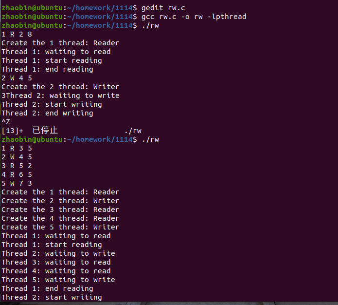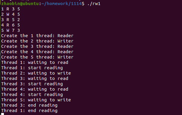 3 在main中测试若干个reader 和writer的测试,提交截图说明代码的正确性