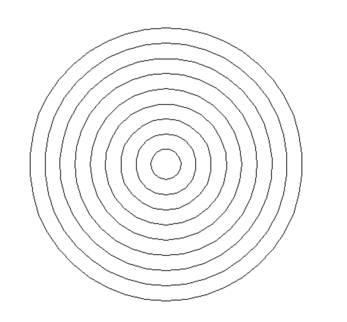 from turtle import * def moveto(x,y): penup() goto(x,y) pendown() def main(): setup(800,600) radius=20 offset=20 for i in range(9): moveto(0,-radius) circle(radius) radius+=offset hideturtle() done() main()