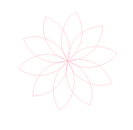 from turtle import * setup(800,600) pencolor('pink') n=10 for i in range(10): for j in range(2): circle(80,90) left(90) right(360/n) hideturtle() done()
