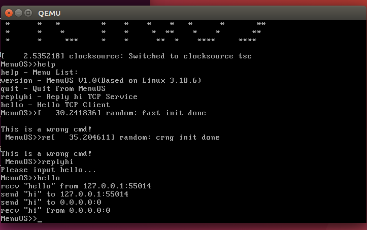 最后在menuOS中输入help可以查看到出现relyhi和hello两条新命令