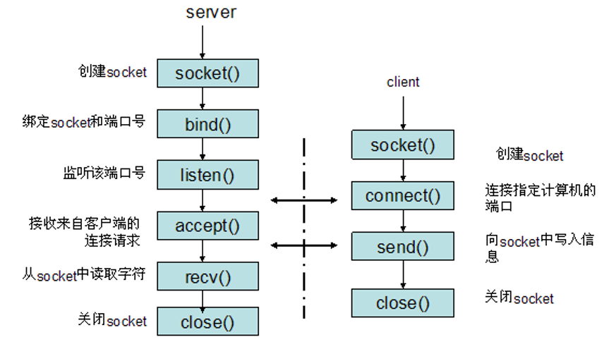简述TCP协议的socket交互流程: