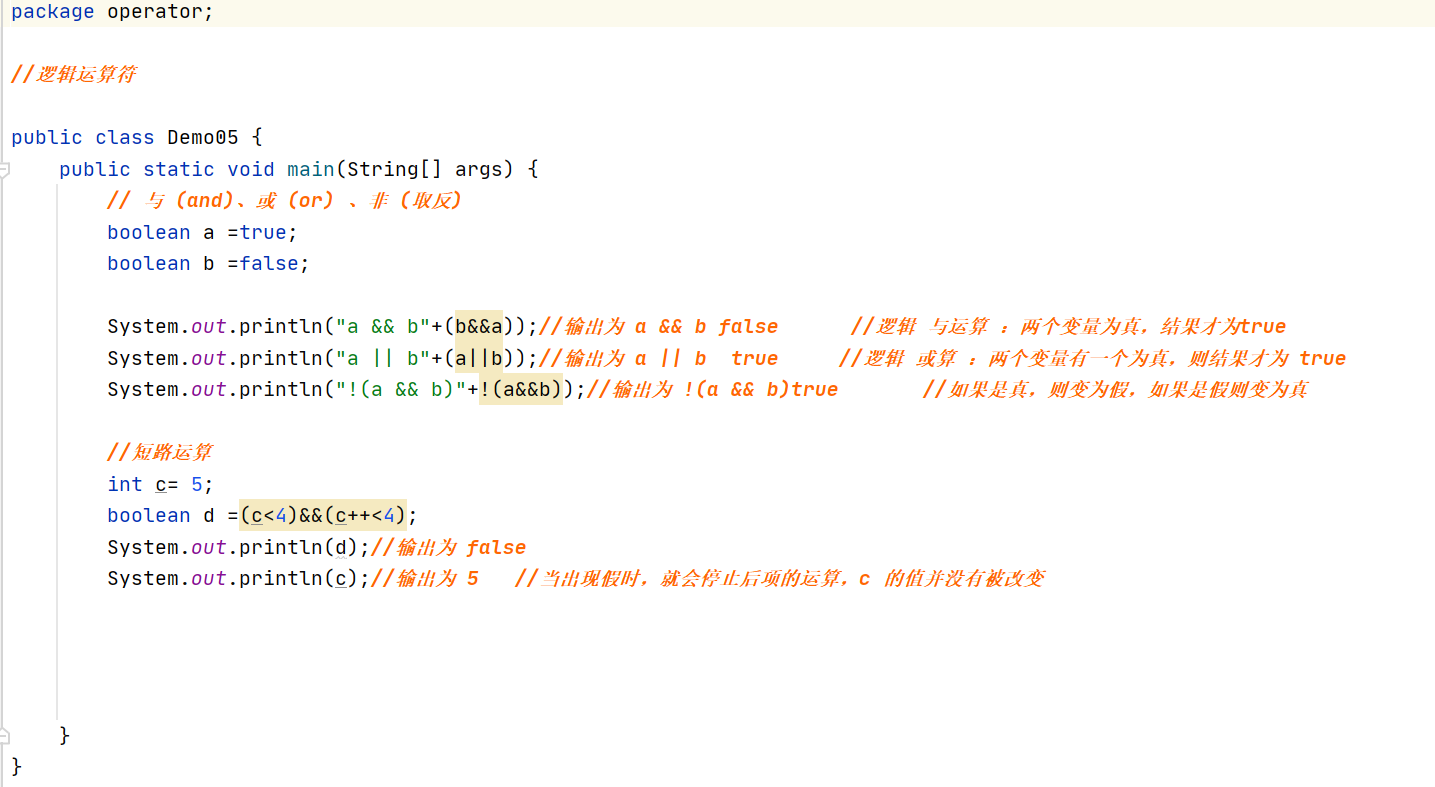 逻辑运算符 :与 (&&)、或 (||)、非 (取反)【 !( ) 】