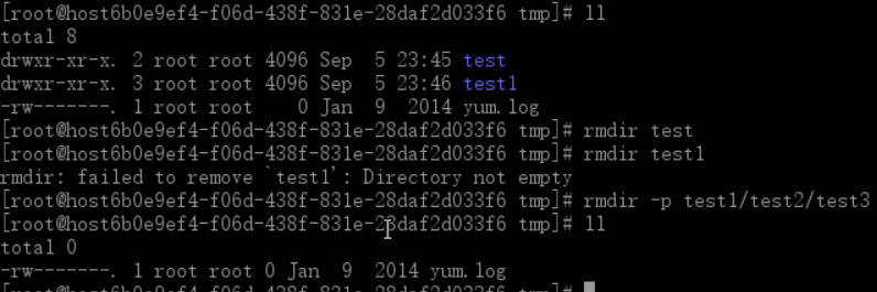 举例:刚刚在/tmp里面创建了目录,我们来把他们删除