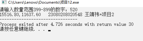 printf("23080208020548 王靖祎+项目四");