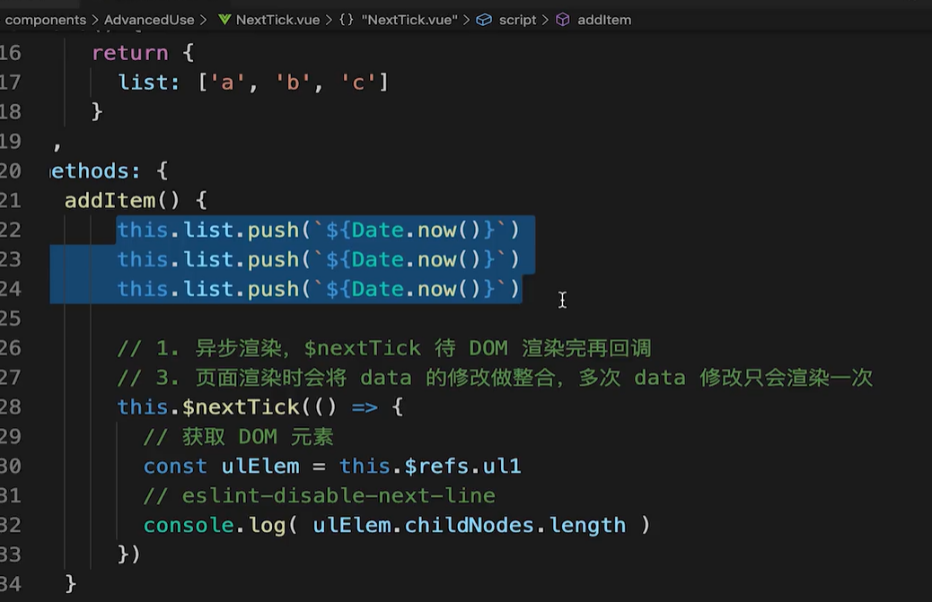 Vue是异步渲染,data改变后Dom不会立即渲染,$nextTick会在DOM渲染之后被触发,以获取最新的DOM节点