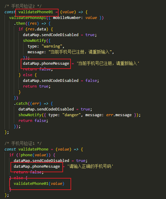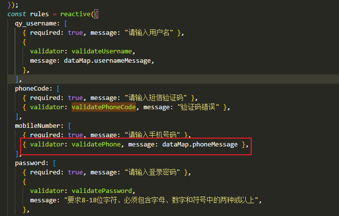 备注:想要对一个字段进行不同校验以及不同提示,只能使用嵌套校验,对message提示语进行变量赋值。