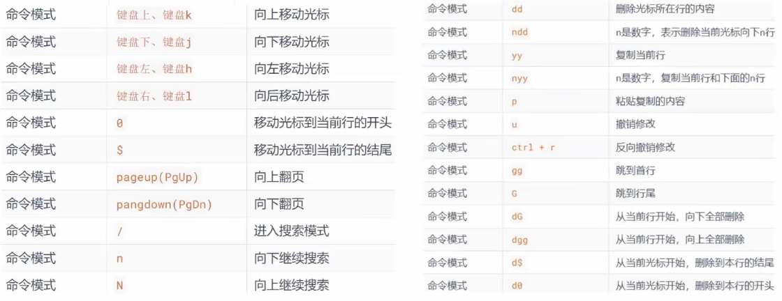 命令模式下,所敲的按键编辑器都理解为命令,以命令驱动执行不同的功能。