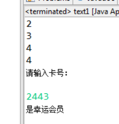 2.输入一个四位会员卡号,如果百位数字是随机数,就输出是幸运会员,否则就输出不是