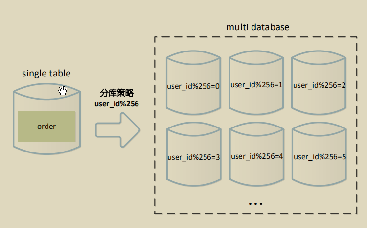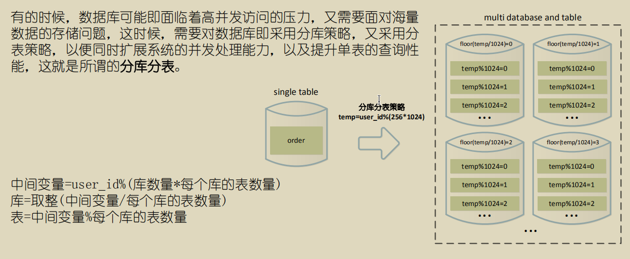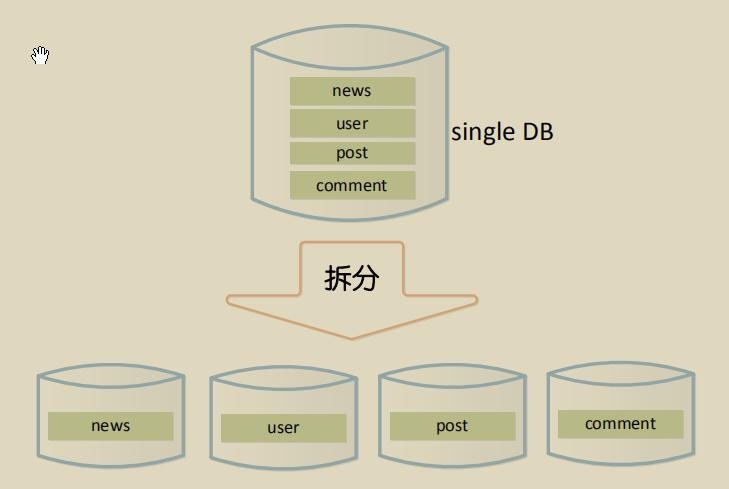 分表能够解决单表数据量过大带来的查询效率下降的问题,但是,却无法给数据库的并发处理能力带来质的提升,面对高并发的读写访问,当数据库master服务器无法承载写操作压力时,不管如何扩展slave服务器,此时都没有意义了。因此,我们必须换一种思路,对数据库进行拆分,从而提高数据库写入能力,这就是所谓的分库。