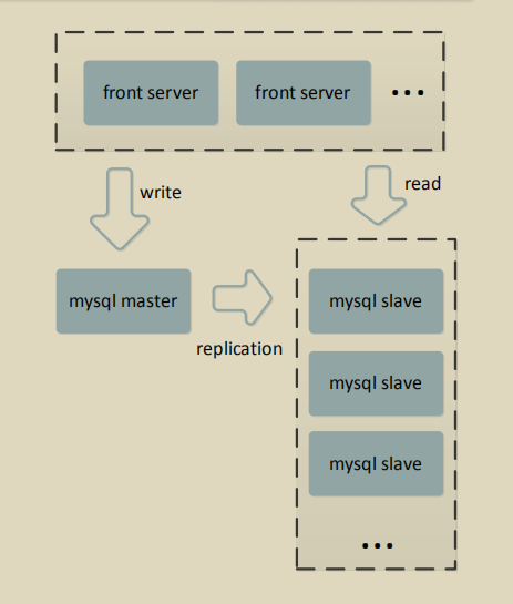 前端服务器通过master来执行数据写入的操作,数据的更新通过binary log同步到slave集群,而对于数据读取的请求,则交由slave来处理,这样,slave集群可以分担数据库读的压力,并且,读写分离还保障了数据能够达到最终一致性。一般而言,大多数站点的读数据库操作要比写数据库操作更为密集,如果读的压力较大,还可以通过新增slave来进行系统的扩展,因此,master-slave的架构能够显著的减轻前面所提到的单库读的压力,毕竟在大多数应用当中,读的压力要比写的压力大的多。