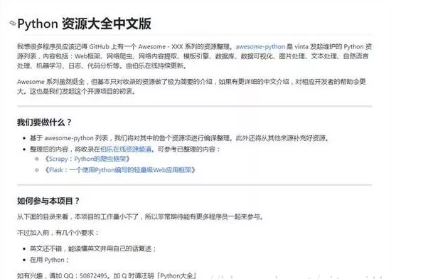 awesome-python ,收集了python各种非常好用非常酷的包,确实非常awesome,让作者相见恨晚( I wish I had this page when I was just getting started)。