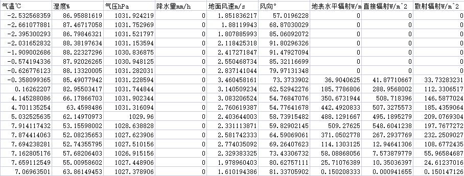 2021-2022某市历年气象数据(降雨、气温、气压、湿度、风速风向、辐射)