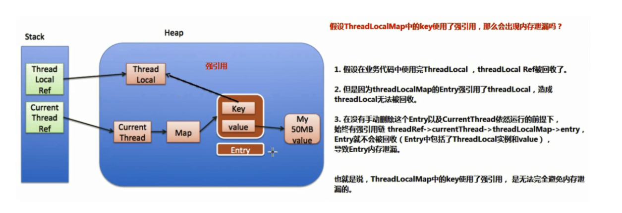 也就是说: ThreadLocalMap中的key使用了强引用, 是无法完全避免内存泄漏的